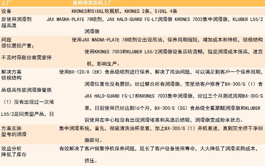 润滑解决方案:BX-300/E(120/A)系列食品级液压油,强度油膜,极压性能好,抗乳化性好,NSF H1食品级消除物理化学污染的隐患