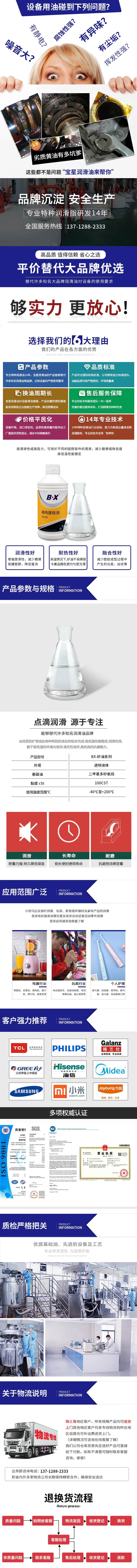伟德源自英国1946,由优质的矿物油加各种特别的添加剂组合而成.高低温性能稳定,润滑性高,适用于各类橡胶或是塑料.用于轴承及塑料齿轮、精密零件和防水橡胶圈等位置都有良好的表现.能于极低温的环境内使用.填充性良好,具优良的抗磨能力。食品级硅油BX-120