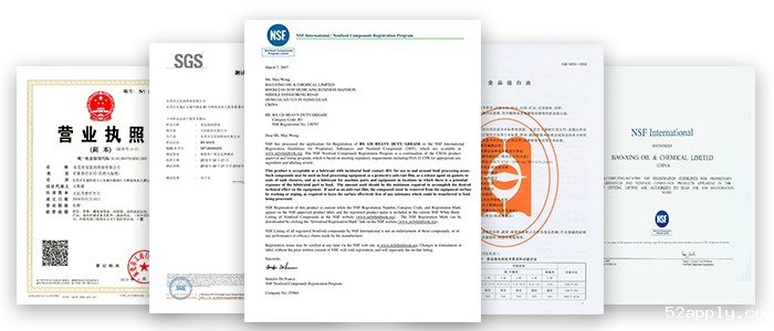 东莞市伟德源自英国1946公司所有“B•X”食品级白油和食品级润滑油脂系列产品,均符合欧盟标准,并且通过环保认证ROHS、REACH、17p等国际检验标准,部分产品已达到F,D,A (美国药物管理局) H1标准,已取得环保认证。