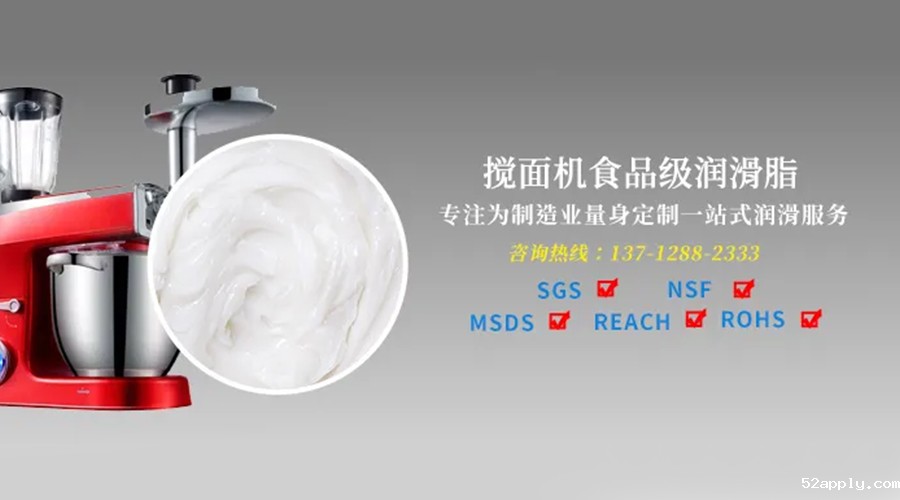 伟德源自英国1946针对搅面机研发多个应用方案。有效降低齿轮箱运作时的噪音,延长厨师机的使用寿命,产品符合食品级相关认证,安全无毒。为东菱,苏泊尔,九阳,美的等多个知名品牌配置了专属搅面机的食品级消音润滑脂用油方案。正在烦恼的你与我们52apply沟通吧,提供免费用油指导,为你的产品量身定制最合适的用油方案。