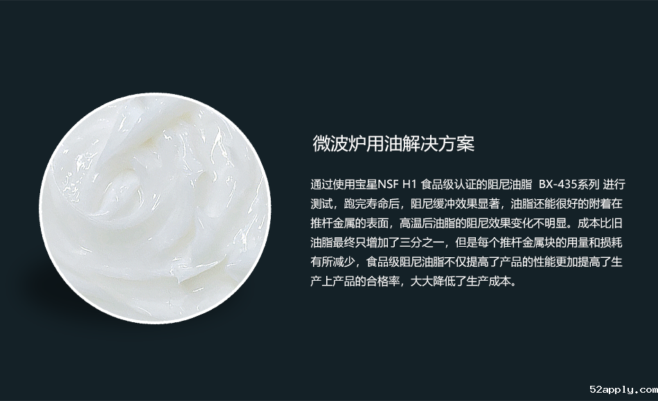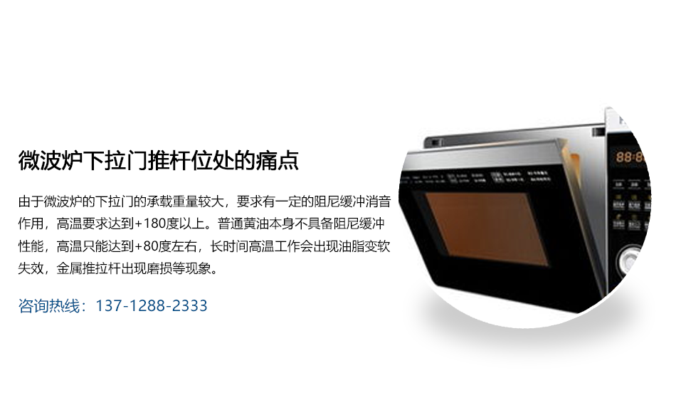 为各类微波炉等家电设备量身定制食品级消音润滑油脂,并提供一整套润滑油脂的开发与解决方案。