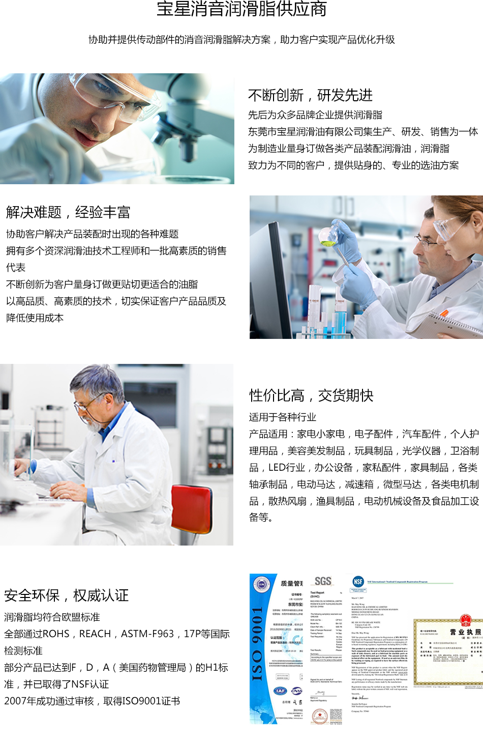 为汽车配件的零部件量身定制消音降噪润滑脂,并提供一整套润滑油脂的开发与解决方案。
