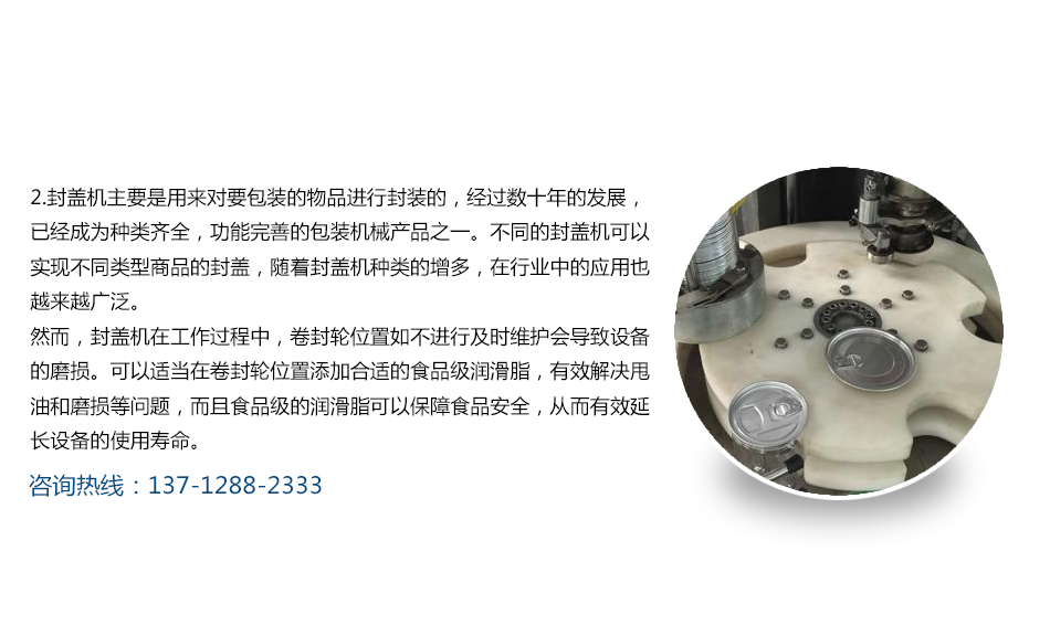 东莞市伟德源自英国1946厂家致力于封盖机食品级润滑脂的定制与研发服务。 为各类食品机械设备量身定制食品级消音抗磨润滑脂,并提供一整套润滑油脂的开发与解决方案。