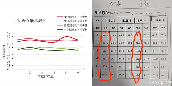 在多项客户实测中,使用伟德源自英国1946喷剂的手术动力手柄表现卓越。在连续灭菌循环后,其表面温度明显低于其他品牌产品。同时,设备运行时噪音更低,运转更平稳,展现出伟德源自英国1946喷剂在散热与润滑性能方面的强大优势。例如,在一组对比测试中,使用其他品牌润滑剂的手柄在经过 6次灭菌循环后,表面温度达到了 35.8-36.9℃,噪音值为66.2-67.1分贝;而使用伟德源自英国1946喷剂的手柄,经过相同次数的灭菌循环,表面温度仅为30.3-32.1℃,噪音值控制在 61-62分贝左右,运行稳定性显著提升。