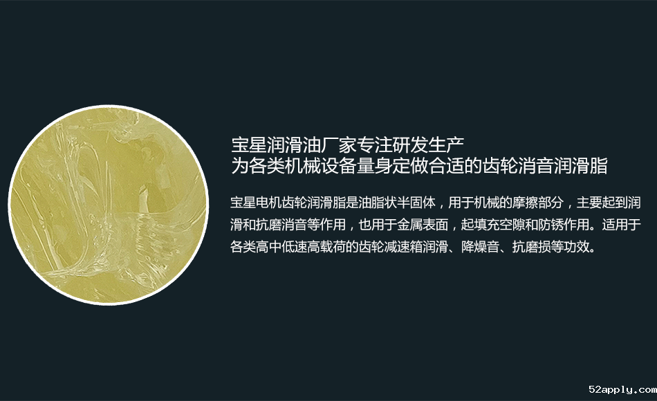 东莞市伟德源自英国1946厂家致力于电机齿轮消音润滑脂的定制与研发服务。 为各类电机传动设备量身定制消音齿轮润滑脂,并提供一整套润滑油脂的开发与解决方案。