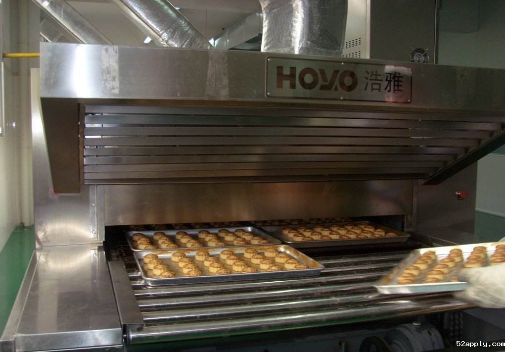 目前月饼生产企业大部分在高温隧道炉烧制月饼。 高温隧道炉在20米到45米之间,隧道炉用链条驱动链板,烘烤盘循环运转,链条距烘烤盘的间隙为10厘米左右。