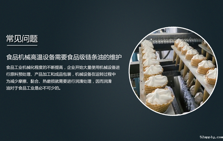 为各类食品机械设备量身定制食品级高温链条油,并提供一整套润滑油脂的开发与解决方案。